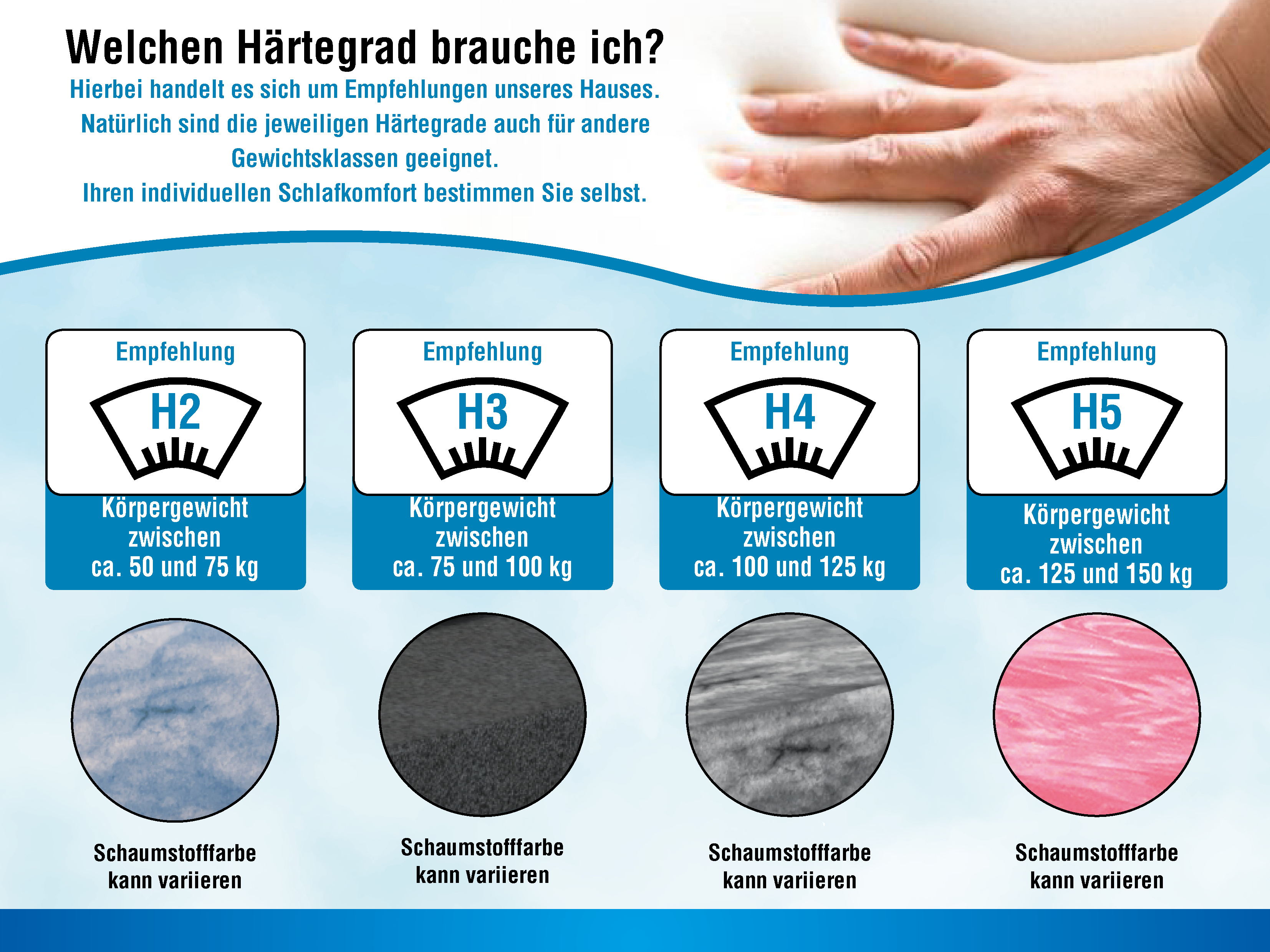 Härtegrad H2/H3 und H3/H4 vereinen Sich in Ihren individuellen Schlafkomfort.